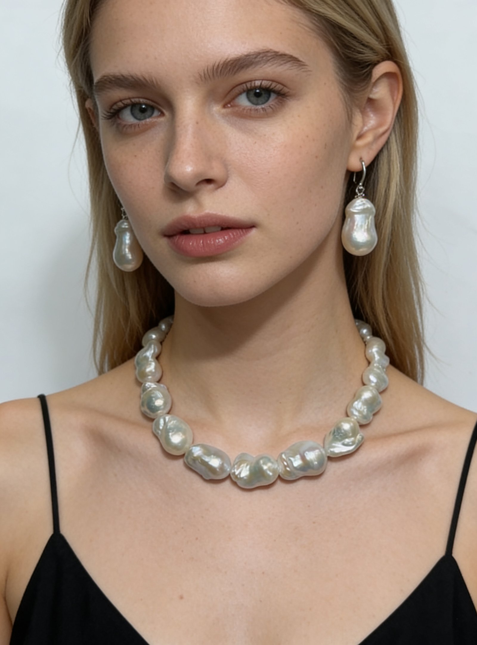 Indulge in the ultimate luxury of this premium natural freshwater baroque pearl jewelry set, a masterpiece of organic beauty and exceptional craftsmanship.