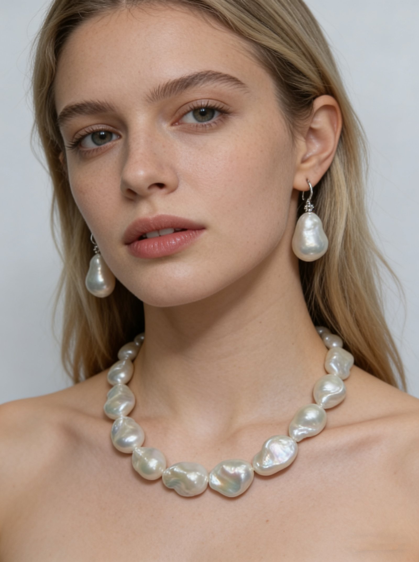 Elevate your jewelry collection with this luxury natural freshwater baroque pearl jewelry set, a masterpiece of organic beauty and exceptional craftsmanship.