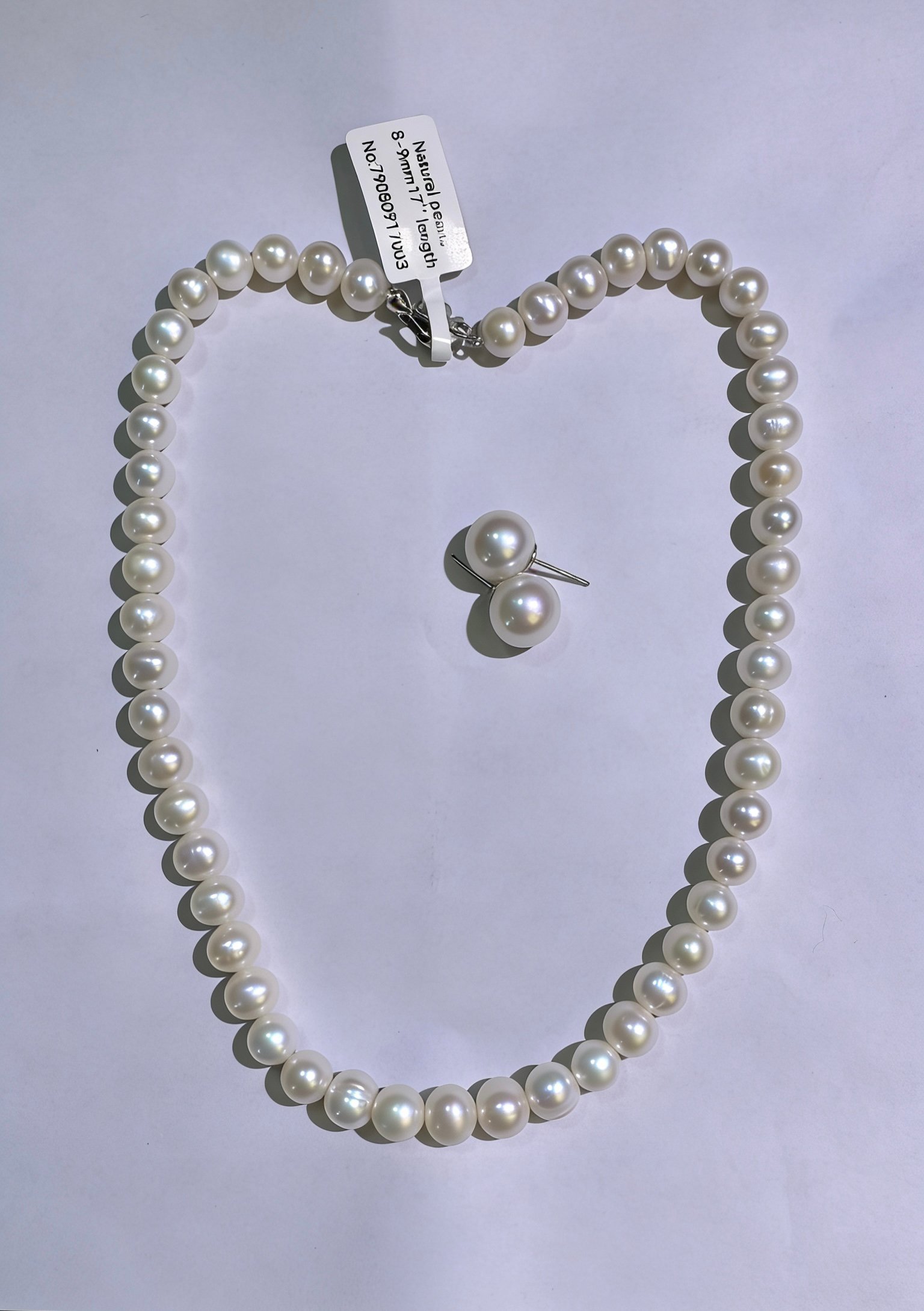 Product Name: 925 Sterling Silver 6mm Natural freshwater Pearl Necklace & 9mm Pearl Earrings Set